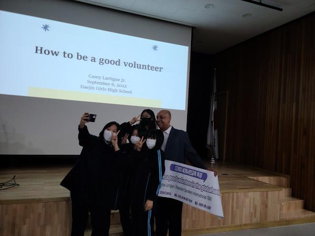 Last night I celebrated my birthday with a speech at Daejin Girls' High School. Yesterday's speech was about Harvard University. I returned today to give a speech about volunteering.